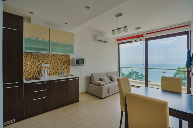 Apartment SuperSeaView提供花园、露台以及带阳台和免费WiFi的空调住宿,距离兹拉纳奥巴拉海滩(Zlatna Obala Beach)有15分钟步行路程。内部提供私人停车位。